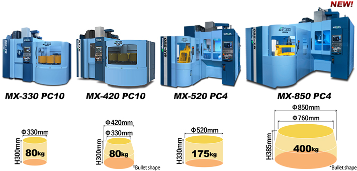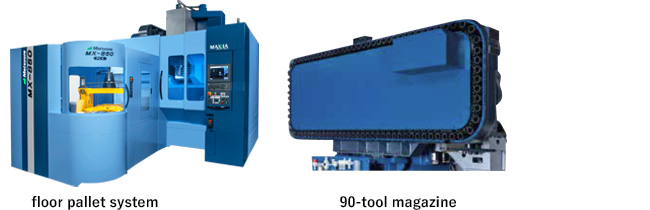 The MX series offers not only reliable 5-axis machining to a wide range of work sizes, but also offers an automation package option for all models in the product lineup, capable of both variable-part /variable-volume production and extended unmanned operation, to solve labor shortages in your workplace. The MX-850 can meet a market where demand for large workpieces is high, and optionally build as a simple automation system with PC4 (floor pallet system) and 90/120 tool magazine, while easily achieving unmanned operation within a small footprint.