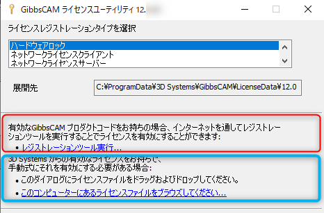 ※C:\Program Files\3 D Systems\GibbsCAM\<バージョン>\Bin\CimLicManager.exe(またはC:\Program Files\CAMBRIO\GibbsCAM\\Bin\CimLicManager.exe)