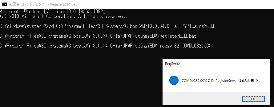⑥ コマンドプロンプトで “RegisterEDM “と入力して、バットファイルを実行します。