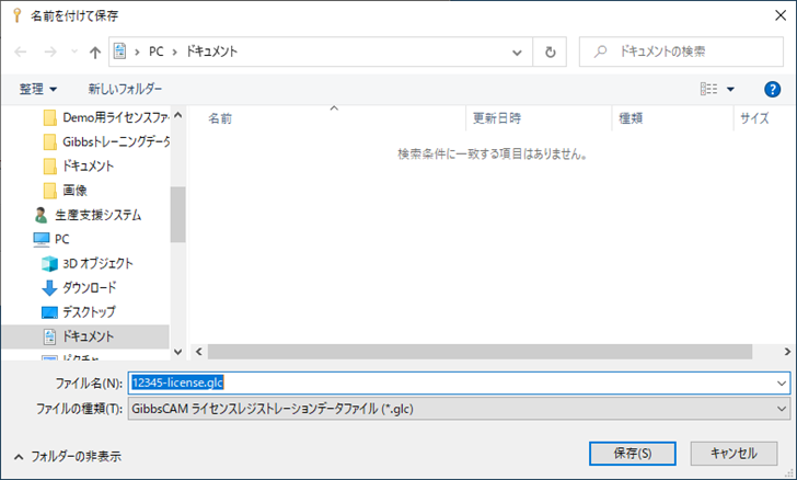 発送用のライセンスファイル保存場所を指示して「保存」をクリックします。