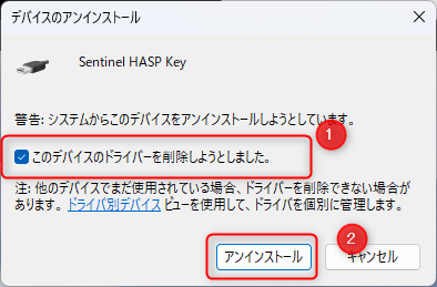 5.デバイスのアンインストール後、ハードキーを取り外し、パソコンを再起動します。