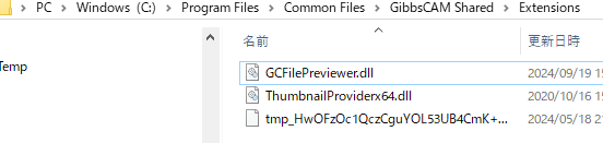 - CAMアンインストールを実施後、C:\Program Files\Common Files\GibbsCAM Shared\Extensions」の「GCFilePreviewer.dll」を削除。