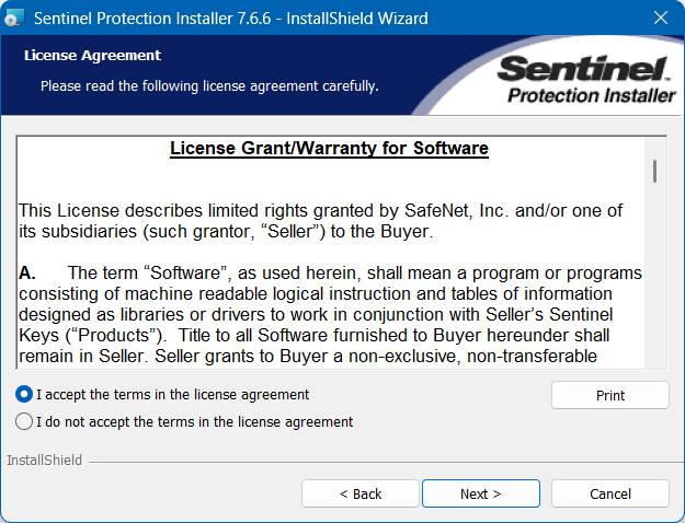 7.「Sentinel Protection Installer 7.6.6.msi」を管理者権限で実行します。