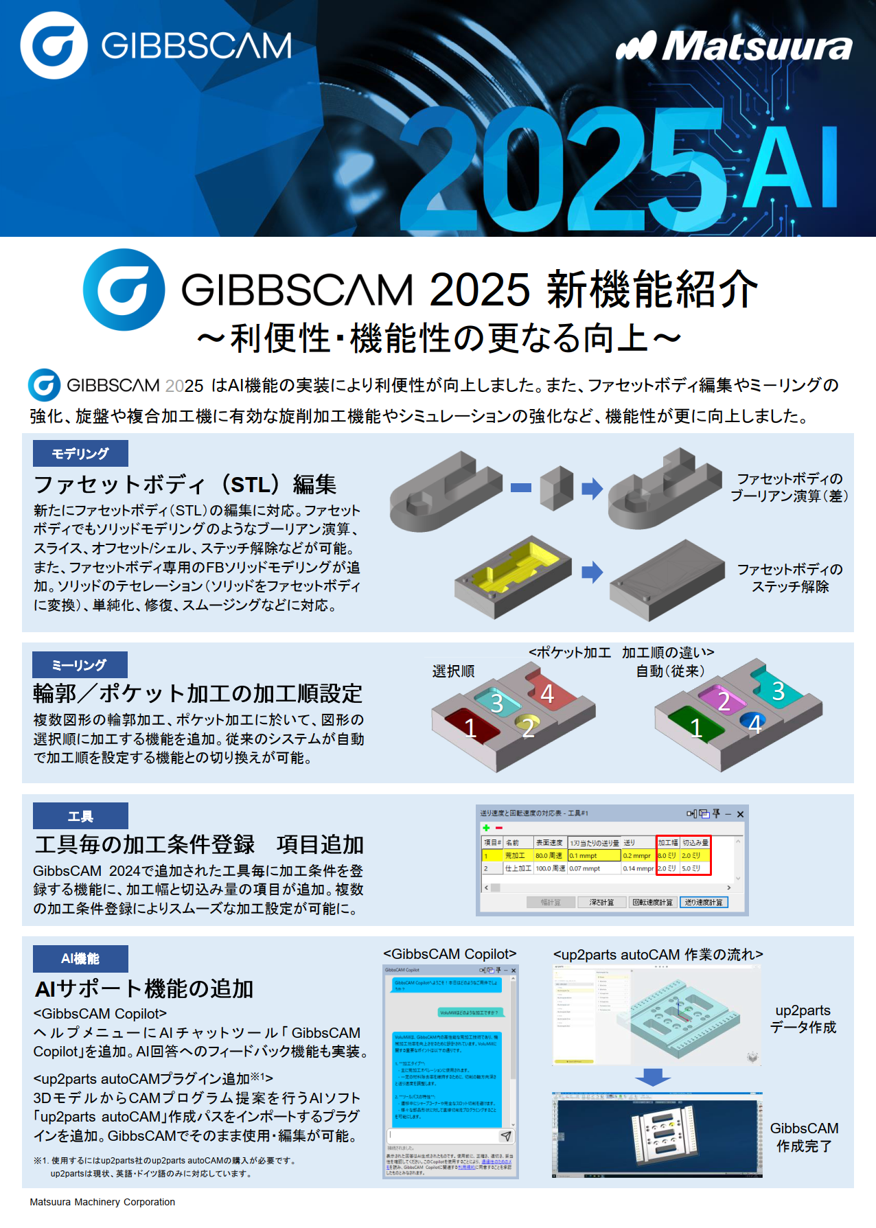 GibbsCAM 2025の新機能につきましては、弊社ホームページの「2025新機能紹介」ページまたは「GibbsCAM 2025リーフレット」をご確認いただきますようお願い申し上げます。