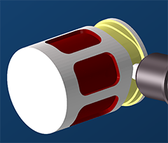 回転軸と横1軸を同時に制御して円筒面にカム加工やポケット加工を行う機能です。(図形対象のみ)
