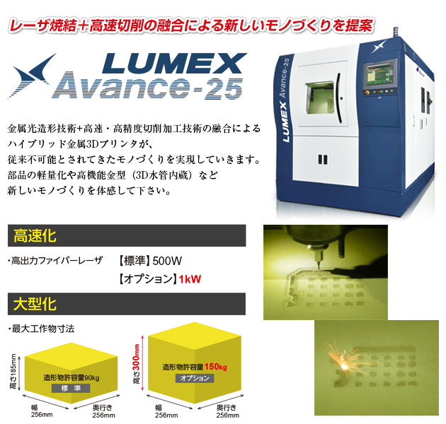 想像を超える創造力をテーマに、新しいモノづくり「ハイブリッド金属3Dプリンタ LUMEX Avance-25」 の実演とソリューション提案を行います。
