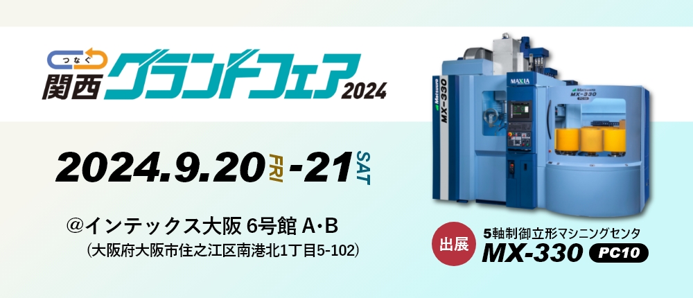 トピックス 展示会 TOP トピックス 展示会 「関西グランドフェア」出展予定 主催者公式サイトへ 開催概要 会期 9月20日(金)〜 21日(土)2日間 会場 インテックス大阪 6号館 A・B Google Map 公式サイト 関西グランドフェア 出展機 5軸制御立形マシニングセンタ MX-330 PC10 お問合せはこちらから その他の展示会情報
