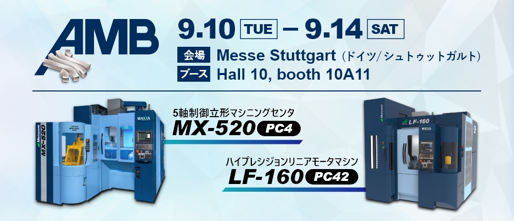 トピックス 展示会 TOP トピックス 展示会 「AMB2024」出展予定 主催者公式サイトへ MEGサイトへ 開催概要 会期 9月10日(火)〜 14日(土)5日間 会場 Messe Stuttgart (ドイツ/ シュトゥットガルト) Google Map ブース Hall 10, booth 10A11 公式サイト AMB2024 出展機 5軸制御立形マシニングセンタ MX-520 PC4 ハイプレシジョンリニアモータマシン LF-160/LV-500 お問合せはこちらから その他の展示会情報