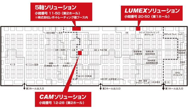- 20-50(東1ホール)ラピットプロトタイピング・3Dプリンタゾーン 12-28(東2ホール)CAMゾーン