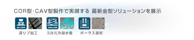 ハイブリッド金属3DプリンタのパイオニアLUMEX Avance-25による CAV型・COR型製作で実現する成形品完成までの一貫した工程や医療・航空機部品製作の提案などを展示してお待ちしております。