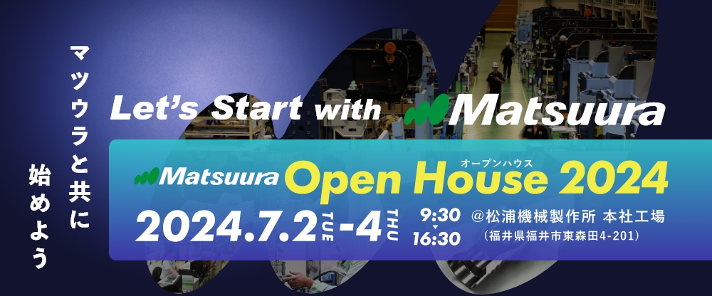 トピックス 展示会 TOP トピックス 展示会 マツウラ Open House 2024 開催 特設サイトへ マツウラ Open House 2024は終了いたしました。 ご来場ありがとうございました。 開催概要 会期 7月2日(火)〜 4日(木)3日間 開場時間 9:30 〜 16:30 会場 株式会社松浦機械製作所 本社工場 Google Map 公式サイト マツウラ Open House 2024 特設サイト お問合せはこちらから その他の展示会情報