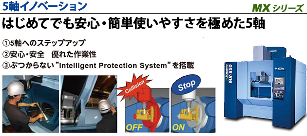 また、はじめてでも安心・簡単「5軸制御立形マシニングセンタMXシリーズ」、 高いコストパフォーマンス「立形マシニングセンタVX-1000/1500」、 驚くほど簡単な操作性「2.5・3次元ソリッドCAMシステムGibbsCAM」の最新版V10など多彩な商品を取り揃えております。