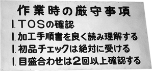 佐藤社長は「加工精度そのものより、形状が複雑なものや、航空機用の部品ということで一般とは違う加工を指示されるものがあること。 それと材料は全部、特殊な材質のため支給されますから、加工ミスや材質ミスのない完璧な管理と注意が第一。 あとは納期おくれのないことですね。 それと、加工図などが米国からの発注のため、JIS規格にはないインチサイズや、 日本にはない独特のものなどもあるため、ついウッカリ間違えた、なんてことは出来ません。 この点は、大変な重圧感があります。」と話されます。