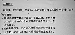 「規模にそぐわない、平和機械の商号は創業の原点です。 親父は世界平和を願い、その思いを商号にしたのでしょう。 これが先代が残した教訓だと思っています。 昭和62(1987)年5月、株式会社に組織替えしたときも、その哲学を、そのままいかしました。 私も空襲の体験から、戦後の厳しい生活をしていますから、この体験をもとにして経営してきました」。