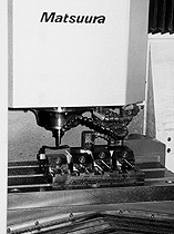展示会見学後、検証や検討を重ね「新しい方法でやるなら、マスター型をやめてプレス型への直彫り加工によって、 金型生産の流れを変えることを考えました。 マツウラさんといろいろ検討し、LX-1型に搭載の60,000回転の主軸モータを、LX-0型に搭載してくれることを条件にして、発注を考えました。 これによって例えば現状のやっているマスター型を、排除する新しい方法によれば、 6日かかっている仕事を4日に短縮できるという机上計算―。 そして数字に出来ない効果も大きいからと、役員会で設備投資の承認をとりマツウラさんに発注したんです。 もっとも、マツウラさんは車で1時間足らずの距離にあり、情報交換やメンテナンス面でも大きな魅力でした―」と木村常務。