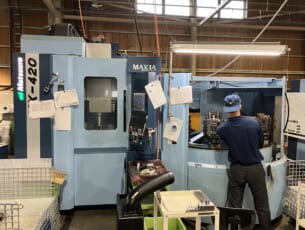 立形2面パレット機の活用により軌道に乗った同社は、加工の幅を広げるため5軸マシニングセンタの設備に乗り出します。「5軸の初号機は2010年に設備したMAM72-42V PC2 です。傾斜軸を活用した加工品の引き合いがあり、それに対応するために導入しました。実際に5軸加工の恩恵を強く実感できたのはその後、2015年に設備したMAM72-35V PC32 です。設備した当初は効果的な活用方法に悩んでおり、32パレットすべてを埋めるのに2年程を要しました。しかし、不定期で引き合いのあるリピート品への対応に活用するようになってからは、徐々に5軸マルチパレット機を活用するノウハウが蓄積されていきました。その後に設備したMX-330 PC10、MX-420 PC10についてはスムーズに立上げることができています。5軸マルチパレット機を活用した夜間無人運転は、現在当社の大きな戦力となっています」と語る早川社長。同社では今後も5軸マルチパレット機への設備投資を継続するとのことで、来年2月にはMAM72 Seriesから新規に1台を設備予定となっています。