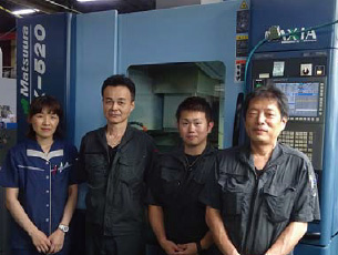 「MC-660VFを設備して、次はマツウラの5軸加工機を 設備する準備として資金確保を進めていました。その時政 府のものづくり補助金制度を知り応募しました。平成24 年度『ものづくり中小企業・小規模事業者試作開発等支援 補助金』に『環境問題推進プロジェクト』で採択され、平 成25年にMX-520を設備しました。廣田工場長が担当し 5軸割出加工は問題なく加工できるまでになっており、現 在同時5軸加工にも挑戦しています。MX-520の導入によ り生産能力が向上したので、2台の機械が不要になりまし た。また5軸加工機を設備したので、3次元測定器が必要 になると思い、取引先に打診したところ、“当社の3次元測 定器で測定したデータを送るので、その設備投資はしなく ていいですよ。生産に注力して下さい”と言われました。 3次元計測器を設備すると、計測する人を雇わないといけ ませんし、作業工数も取られます。現在までMX-520で加 工した複雑な形状でも加工不良は出ていないので生産に集 中できて助かっています」と北﨑社長。