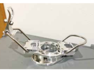 「スノーボード用品を輸入販売している友人の依頼で“アルペンスノーボード向けのバインディング”を開発して自社ブランドで販売したいとの依頼がありました。5軸マシニングの導入を機に技術力が向上し、作れなかった部品は作れるようになり、改良とテストを重ねて完成度が高まりました。さらに横浜で開かれたウィンタースポーツ用品の展示会に出展するなど販売に向けた活動も行い、今年になってようやく商品として世に出せるレベルに到達しました」と記載されています。
