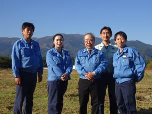森取締役の提案で、国定公園にも指定されている中国山地の秀峰である那岐山をバックに皆さんの写真を撮りました。