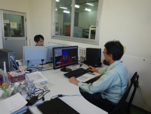 「津山高専出身の先輩が働いていたのが縁で入社しました。私は電気科出身ですが、加工のプログラムを担当しています。最初は加工の知識がなく大変でしたが、今は全てを任されるのでやりがいがあります」と神田主任。