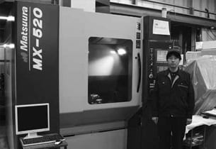「MX-520を設備しましたが、フルの5軸加工はありません。しかし、一回の取り付けで様々な方向から加工出来るので段取りを変える手間が省け、また治具製作が容易です。この利点を活かし、当社では、形状が難しく加工数の少ない仕事を受注したいと思っています。難しい仕事に挑戦することで人材が早期に育成できると考えています。また現在の引き合いでは、旋盤を使う丸モノの試作が増えています。丸モノの量産を行なう会社はありますが、試作が出来る会社が少ないので当社で受注が取れます。当社には1台の複合加工機が有りますが、操作性に優れているマツウラの5軸複合加工機CUBLEXに関心があります」と滝澤社長。