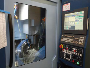「当社と同じ様にガスタービン・ブレードを製作してい る東京都青梅市にあるコスミック社を訪問しました。この 会社はマツウラのMAM72-35Vを複数台設備して、当社 と同じタービンブレードの加工を行っていました。5軸加 工機で、しかも長時間無人運転でタービンブレードの加工 している現実を目の当たりして衝撃を受けました。創業間 もない当社に設備資金も無く導入は無理と諦めました。そ の後モノづくり補助金を申請し、承認が取れれば設備しよ うと考えていましたが、残念ながら承認は取れませんでし た。しかし、会社の将来を考えるとMAM72は絶対に必要 と決意し、平成28年10月に導入しました。工場の一角に 十分な基礎工事を行い、空調完備した専用の部屋に設置し ました。更に5軸加工用のプログラムが作れる専門の社員 を雇用して日々技術力を高めています。基礎工事は2台分 してあるので、確実に実績を上げ、2台目のMAM72が 早々に設置出来るようになりたいと希望を持っています」 と岡田社長。