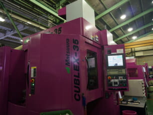 短納期実現に一役買っているのが、同社に設備されているマツウラの多面パレットシステムで、PC32のMAM72-35Vが2台、PC2のマシニングセンタが5台稼働しています。