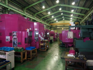 昭和56年に同社のマシニングセンタ1号機としてMC-1000V4を設備し、昭和63年に5台目のマツウラ立形マシニングセンタとしてピンク色のRA-2を設備しました。この機種は稲垣社長が見本市で見たピンク色の機種を気に入り、実際にオーダーされました。それから現在まで16台のマツウラ製マシニングセンタを設備頂いています。そのうち、10台のマシニングセンタがピンク色で明るい工場です。