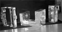 「加工部材がアルミに特化したのは、ハイテクメーカーとして当然ですが、これをマツウラの新しい機械とシステムでやること。 マツウラにも協力願ってギブスシステムで、図面を変更するCADからプログラムを作成するCAMの仕事をやり、 これをマツウラのMAM72マシンの5軸加工機につなぐという、三段構えの仕事でした。 しかも、どれも初体験。 やるからにはタカトリで一番に難しいパーツに挑戦しようと。 もともとアルミダイキャストだったパーツを、アルミブロックの削り出しにする、 パンスト用縫製機の肝心なパーツです」