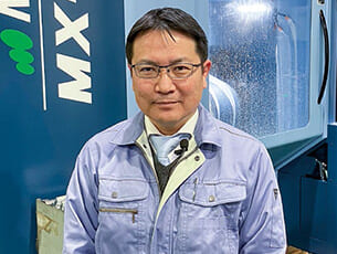 2011年には生産効率の向上を目指し、同社初の5軸機となるMX-520 を設備します。「それまで立形で対応していたワークの工程集約を目的として、5軸機の設備に至りました。5軸機による恩恵は大きく、立形では2工程を費やしていたワークも1工程に集約することができるようになりました。また、より複雑なワークに対応するうえでも5軸機の存在は大きな武器となっています。MX-520 で確かな実績があったため、その後、同じく5軸機のMX-850 を2台設備する運びとなりました」と広崎常務。「立形から5軸機への移行はスムーズに進みました。当社では割り出し加工をメインに行っているため、同時5軸加工からスタートする場合と比べ、移行にあたってのハードルは低かったように思います」と安井部長。自身を『マツウラファン』と称する広崎常務は、これまで設備してきたマツウラ機について次のように評価します。「創業当時から一貫して当社がお客様から評価頂いている点は、煌めくような加工面の仕上がりの良さです。最新の5軸機はもちろん設備から25年以上経過したMC-1000VFでさえ、当社が求める加工面に仕上がっていることからも、マツウラ機の性能の高さが伺えます」広崎常務の言葉どおり、同社では引き続きマツウラ機の増設を予定しており、2023年夏にはMC-1000VF の後継機として、2台の立形マシニングセンタVX-1000 の設備を控えています。