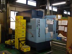 その後も2台の立形マシニングセンタ「MC-500V2」の導入。また量産対応にパレット付加した「MC-500V2 PC2」と 2 台の「RA-1」を設備されました。そして、それら機械の老朽化に対応すべく平成 20 年 12 月に最新 2 面パレット装備の立形マシニングセンタ「R.Plus-550」を設備されました。