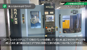 同社にはMAM72-35Vを2台、MX-520を2台導入していただきました。マルチパレットや大容量工具マガジンなど、自動化オプションを有効に活用して多品種少量生産が行われています。詳しくは本編動画をご覧ください。