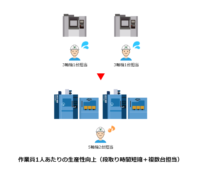 ハイ!「5軸機」+「自動運転」で1人あたりの生産性向上で解決できます。