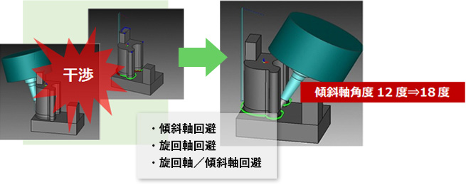 干渉を回避する傾斜軸、旋回軸の角度をシステムが判別・自動変更