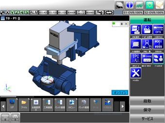 安心して5軸加工を行えるように、マツウラ独自開発の衝突防止機能(Intelligent Protection System)をNC画面に標準搭載(従来は外部PCが必要)し、自動運転時のプログラムミスによる機械衝突や手動操作時・ワーク段取り時における人為的ミスを未然に防ぎます。