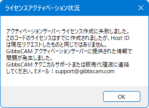 ご使用頂いたGibbsCAMインストールプログラムの実行時、上記の処理が正常に完了しなかった場合、この問題が発生します。